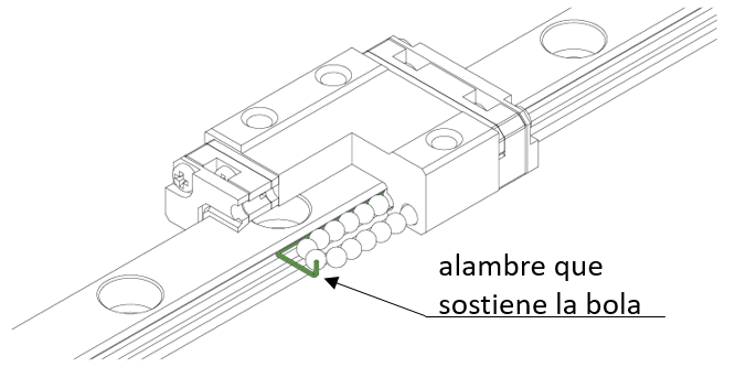 El modelo RSX incorpora un cable de retención de bolas que evita que las bolas se caigan cuando se retira el bloque de LM del carril LM, lo que facilita el montaje.
