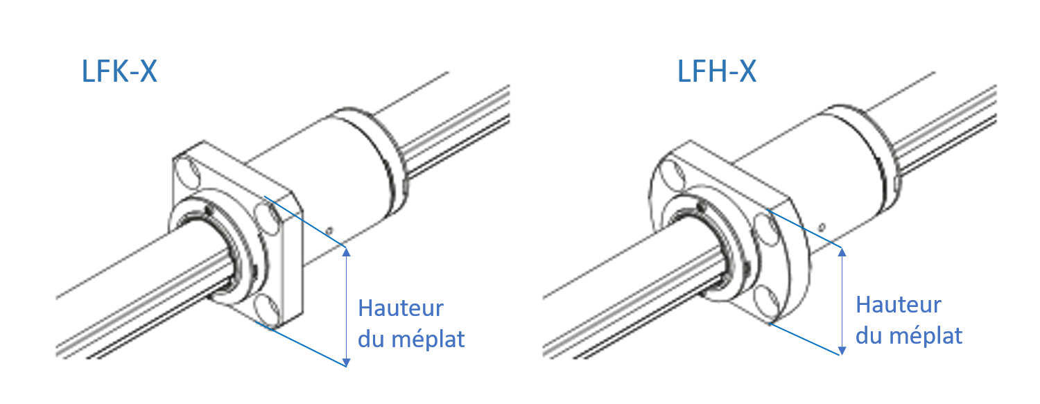 Les modèles LFK-X et LFH-X sont conçus avec une mi-hauteur de bride plus faible que le modèle conventionnel LF-X. Cela permet des conceptions plus compactes et une fixation moins encombrante aux pièces environnantes.
