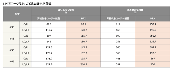 同サイズのLMブロック、LMレールで自由な組み合わせで規格を満足する互換性製品をラインナップしています。